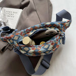 La sacoche banane imprimé bohémien femme capte l'attention avec son motif coloré et ses nuances terre cuite, vert et bleu pastel. Son design géométrique complexe apporte une touche d'originalité et de sophistication à votre look casual. Confectionnée dans un tissu robuste, elle est suffisamment spacieuse pour accueillir vos essentiels quotidiens.