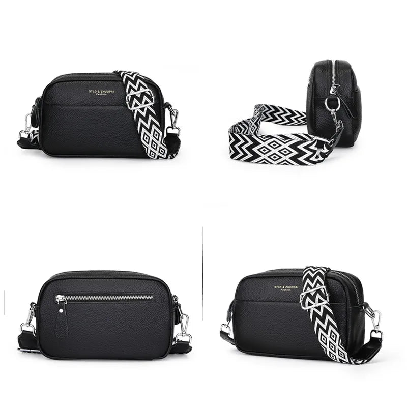 Notre sacoche à bandoulière en cuir véritable se démarque par sa bandoulière ajustable présentant un design géométrique attrayant. Parfaite pour s'adapter à toutes les morphologies, cette bandoulière combine fonctionnalité et style. Les finitions métalliques argentées enrichissent le caractère moderne de ce modèle, rendant chaque sortie une occasion de marquer votre présence avec élégance. Optez pour cette sacoche et appréciez la fusion impeccable du chic et du pratique dans un accessoire résolument contemporain.
