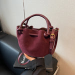 La sacoche cuir daim femme combine élégance et fonctionnalité, idéale pour sublimer votre tenue. Confectionnée en cuir suédé bordeaux, cette sacoche arbore un design compact et raffiné. Son allure légèrement arrondie est complétée par deux petites anses pour un port à la main et une bandoulière ajustable pour un porté épaule ou croisé.