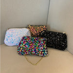 a chaîne bandoulière élégante permet de la porter en toute légèreté, que ce soit à l'épaule, en bandoulière ou à la main comme une pochette pour un look chic. Fabriquée dans un matériau à sequins de haute qualité, cette sacoche est idéale pour les occasions festives et les sorties où vous souhaitez briller.