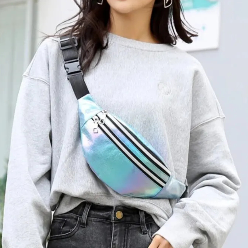 Cette sacoche banane holographique au design futuriste est l’accessoire parfait pour celles qui aiment se démarquer. Fabriquée en matériau holographique brillant, elle change de couleur selon l’éclairage, créant un effet arc-en-ciel captivant. Que vous l’utilisiez pour vos vacances à la plage ou pour vos sorties en ville, cette sacoche est à la fois pratique et stylée.