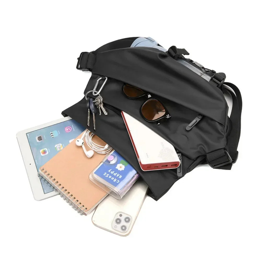 Adoptez un look élégant avec la sacoche de poitrine premium au design moderne pour homme. Cette sacoche, avec ses lignes épurées et sa finition noire lisse, s'intègre parfaitement à tout style vestimentaire. Conçue pour être à la fois chic et fonctionnelle, elle vous permet de transporter l'essentiel avec sophistication. Les boucles sur les côtés offrent des options supplémentaires pour la personnalisation ou l'attachement, rendant cet accessoire non seulement esthétique mais aussi polyvalent. Idéale pour toute occasion, elle est le compagnon parfait des hommes modernes soucieux de leur apparence.