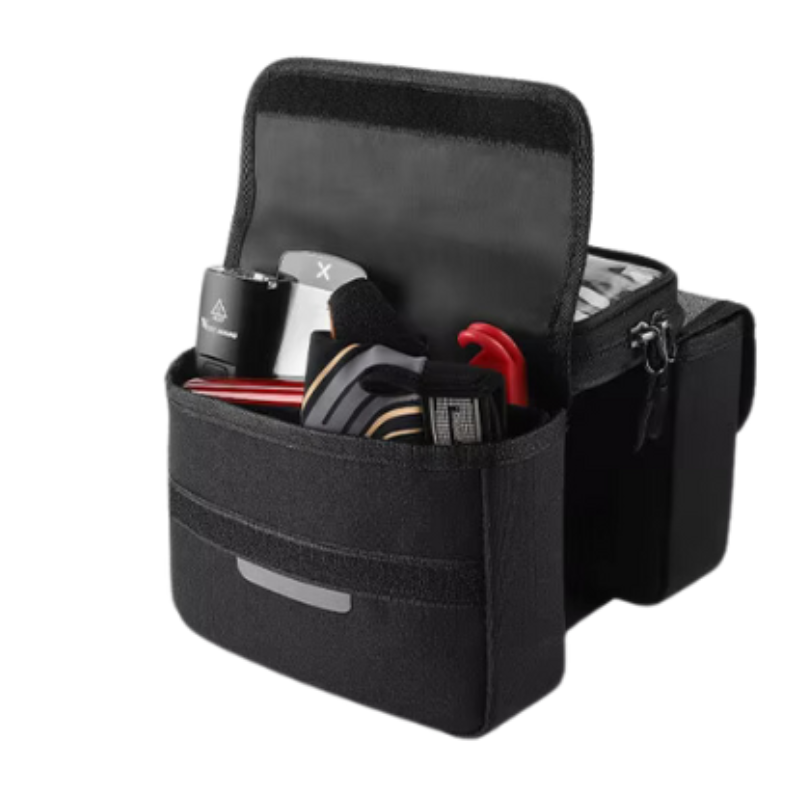Cette sacoche double capacité (2 L) allie praticité et polyvalence pour vos trajets à vélo. Avec ses deux compartiments spacieux reliés par un velcro central intégrant un support pour téléphone tactile, elle offre une solution innovante et fonctionnelle pour transporter vos affaires et utiliser votre smartphone en toute sécurité.